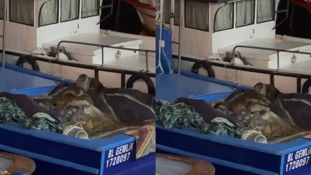 Yakından bakıldığında ise aç kaldıkları düşünülen anne su samuru ile yavrularının tekneye çıktığı görüldü. Bir süre tekne üzerinde dolaşan sevimli misafirler, limanda bulunanların ilgisini çekti.