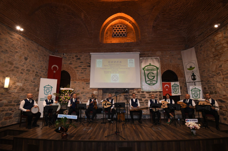 650 yıl önce dönemin ahilerinin bir ahinin evinde toplanarak meşk etmesiyle başlayan asırlık Gezek Gecesi geleneği, Ördekli Kültür Merkezi’nde saz ve söz üstatlarının eserleriyle tekrar yaşatıldı. ‘Saz Başlayınca Söz Biter-Geleneksel Gezek Gecesi’nde Türk Sanat Müziği’nin unutulmaz eserleri hep bir ağızdan seslendirildi. Bursa Dostluk Gezeği Musiki Derneği sazende ve hanende ustalarının eserleriyle renk kattığı gecede, müzik severler keyifli vakit geçirdi.