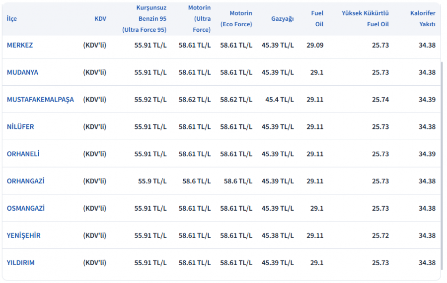 BURSA'DA FİYATLAR...