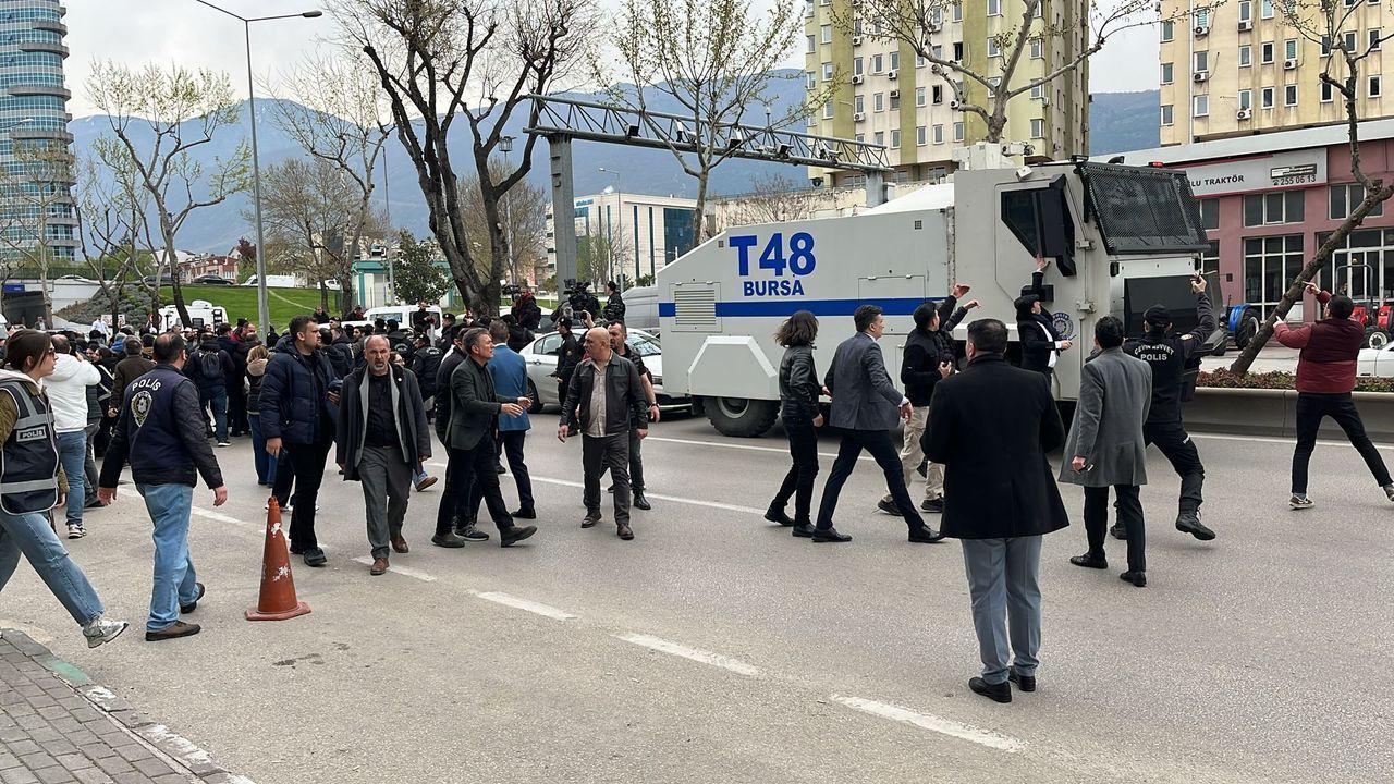 Eylem sırasında toplanan grup sık sık "Bursa'nın başkanı Mustafa Bozbey" sloganları atarak destek gösterisinde bulundu.