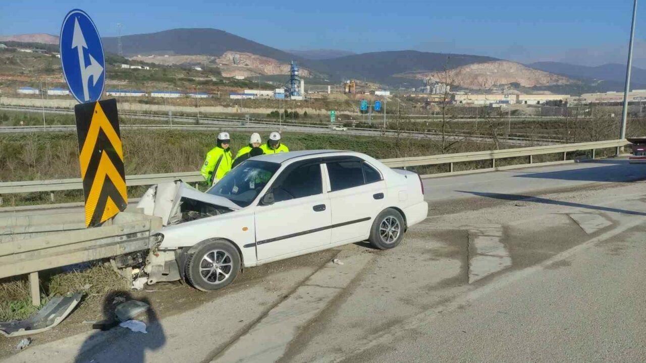 Edinilen bilgiye göre, Orhangazi istikametinden Bursa istikametine doğru gitmekte olan Adem T. (34) idaresindeki 16 HK 350 plakalı otomobil otoban kavşağı girişinde kontrolden çıkarak bariyerlere saplandı.