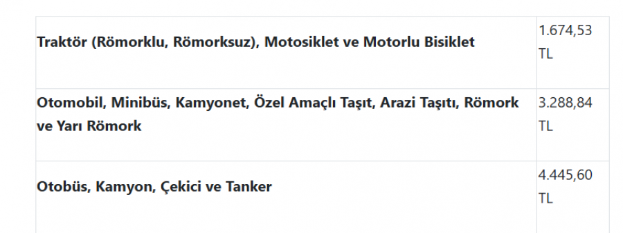 2025 yılındaki mevcut tarifenin 1 Ocak 2026 itibarıyla bu oranda zamlanacağı öğrenilirken, gelecek yıl uygulanacak muayene ücretleri şu şekilde: