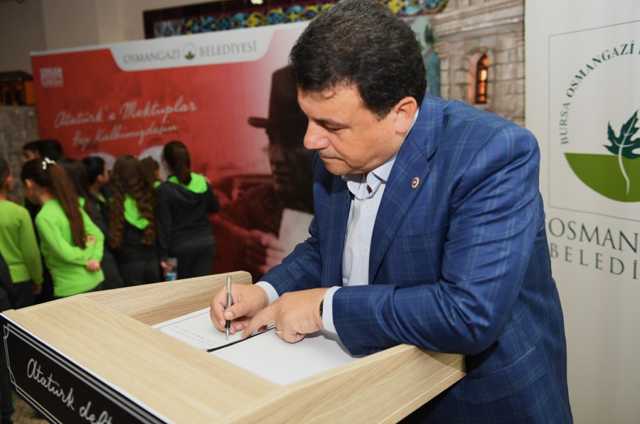 Atatürk Defteri Osmangazi Belediye Başkanı Erkan Aydın, CHP Bursa Milletvekili Hasan Öztürk, mektup yazan çocukların ve belediye personelinin katıldığı törenle Osmangazi Belediyesi'nin girişine konuldu. Törene katılan Osmangazi Belediye Başkanı Erkan Aydın ve CHP Bursa Milletvekili Hasan Öztürk, Atatürk Defterine duygu ve düşüncelerini yazarak Atatürk'e olan sevgi ve bağlılıklarını bir kez daha dile getirmiş oldu. Törene katılan çocuklar Atatürk'e yazdıkları mektuplarını Atatürk Defterinden sırayla okudu. Ayrıca Osmangazi Belediyesi'nin girişine belediyeye gelen misafirlerin Cumhuriyet ve Atatürk'ü anlatan düşüncelerini etiketlere yazarak yapıştırabilecekleri bir Anı Duvarı oluşturuldu. Anı Duvarı 10 Kasım'a kadar Osmangazi Belediyesi'nin girişinde bulunacak.
