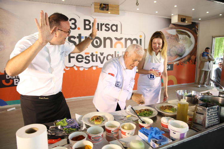 Bursa’nın zengin mutfak kültürünü turizme kazandırmak amacıyla Büyükşehir Belediyesi tarafından ‘Damağımdaki Bursa’ temasıyla düzenlenecek olan 3. Gastronomi Festivali’ne 13-14-15 Eylül tarihlerinde Merinos Park ev sahipliği yapacak. Bu yıl uluslararası katılımla gerçekleşecek festival; konserler, yarışmalar, ünlü şeflerle söyleşiler gibi birbirinden renkli içeriklerle Bursalılara unutulmaz bir deneyim yaşatacak. Festival öncesinde Bursa’nın lezzetlerini ilçelerle buluşturmak ve Bursalıları festivale davet etmek amacıyla Büyükşehir Belediyesi iştiraklerinden Kültür AŞ tarafından hazırlanan ‘Gastronomi Tırı’, bugüne kadar Osmangazi, Mustafakemalpaşa, Nilüfer, Keles, Orhangazi, Karacabey, İnegöl, Orhaneli ve Gürsu’ya uğradı. Bursa Büyükşehir Belediye Başkanı Mustafa Bozbey ve eşi Seden Bozbey de Botanik Park’ta Gastronomi Tırı’na konuk oldu. Şef Dr. Esat Özata ile birlikte şef önlüklerini giyerek mutfağa giren Başkan Bozbey ve eşi, tüm malzemeleri Bursa'da yetiştirilen ve üretilen ürünleri kullanarak kestaneli mücver yaptı. Bursalıların yoğun ilgi gösterdiği programda, Başkan Bozbey tarafından kestaneli mücverin püf noktaları da anlatıldı. Programa, Büyükşehir Belediyesi Genel Sekreter Yardımcısı Mehmet Yıldız, Dış İlişkiler Dairesi Başkanı Pınar Işıkyıldız, BURFAŞ Yönetim Kurulu Başkanı Yalçın Işıkyıldız, Kültür AŞ Genel Müdürü Yankı İçöz ve belediye bürokratları da katıldı.