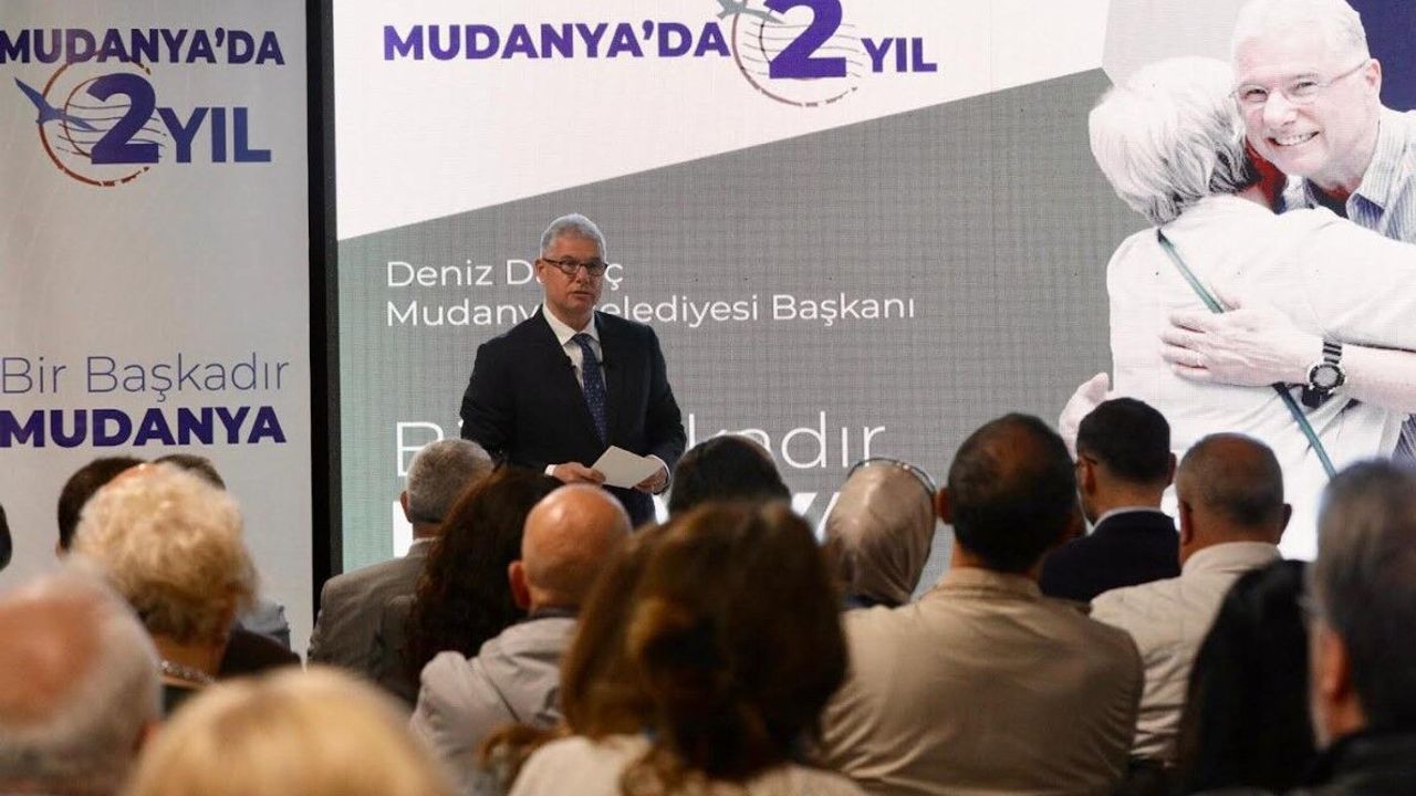 Mudanya Belediye Başkanı Deniz Dalgıç, 31 Mart 2024 yerel seçimlerinin ardından geçen iki yılı Mudanya Gençlik ve Spor Merkezi’nde düzenlenen toplantıda kapsamlı bir sunumla anlattı. Toplantıya, meclis üyeleri, muhtarlar, siyasi partiler ve sivil toplum kuruluşlarının temsilcileri ile basın mensupları ve vatandaşlar katıldı.