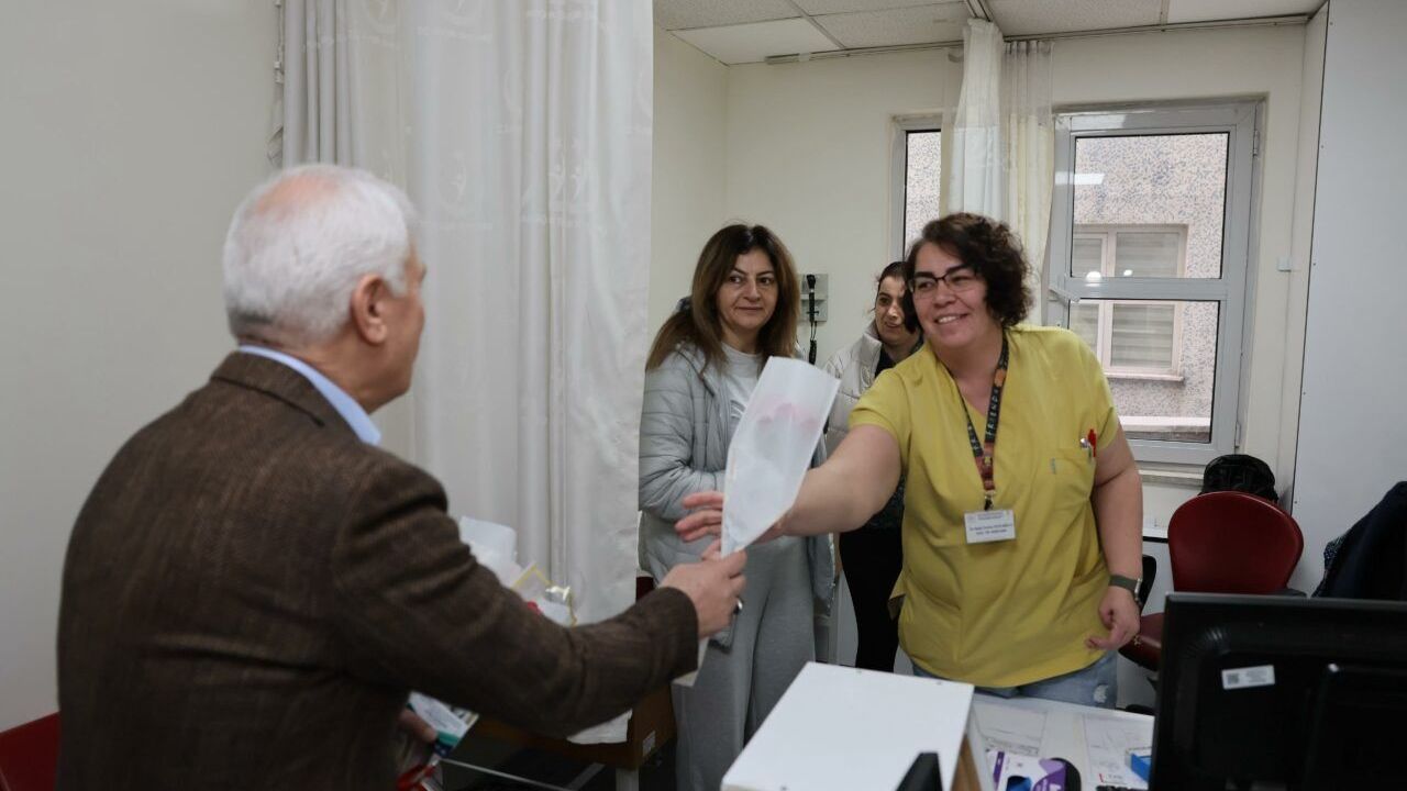 Ardından Bursa Yüksek İhtisas Eğitim Ve Araştırma Hastanesi’ne geçen Başkan Bozbey, hastane yönetimi ve görevli sağlık personelini ziyaret etti. Doktor ve hemşireler başta olmak üzere tüm çalışanların Tıp Bayramı’nı tebrik eden Başkan Bozbey, günün anısına karanfil dağıttı.