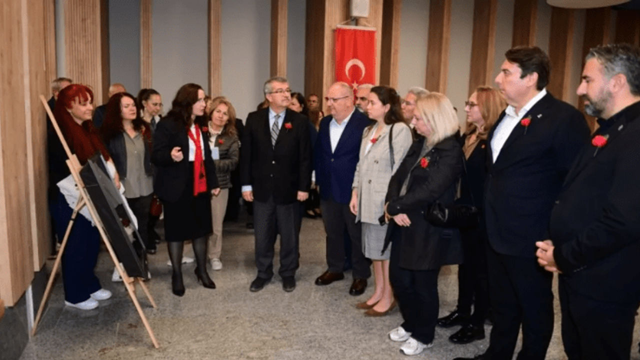 Kurdela kesiminin ardından sergiyi gezen protokol üyeleri, eserleri dikkat ile incelerken Ulu Önder Mustafa Kemal Atatürk'ü saygı ve minnet ile andı. Sergi hakkında bilgiler veren Dilber Demirkıran, 18 eserin bulunduğunu ve satıştan elde edilecek gelirin öğrencilerin bursunda kullanılacağını belirtti. Serginin ardından Bursa Uludağ Üniversitesi Doç. Dr. Hacer Karabağ Arslan, 'Balkanlar'dan Anadolu'ya: Atatürk'ün Liderlik İnşası' adlı söyleşi ile katılımcılara bilgilendirmelerde bulundu. Söyleşide Atatürk'ün Balkanlar coğrafyasından Anadolu'ya dek uzanan milli mücadele ruhuna ışık tutan Doç. Dr. Hacer Karabağ Arslan, Cumhuriyetin ilanı ve sonrasına ilişkin anılara perde açarak, Atatürk'ün liderliğine vurgu yaptı.