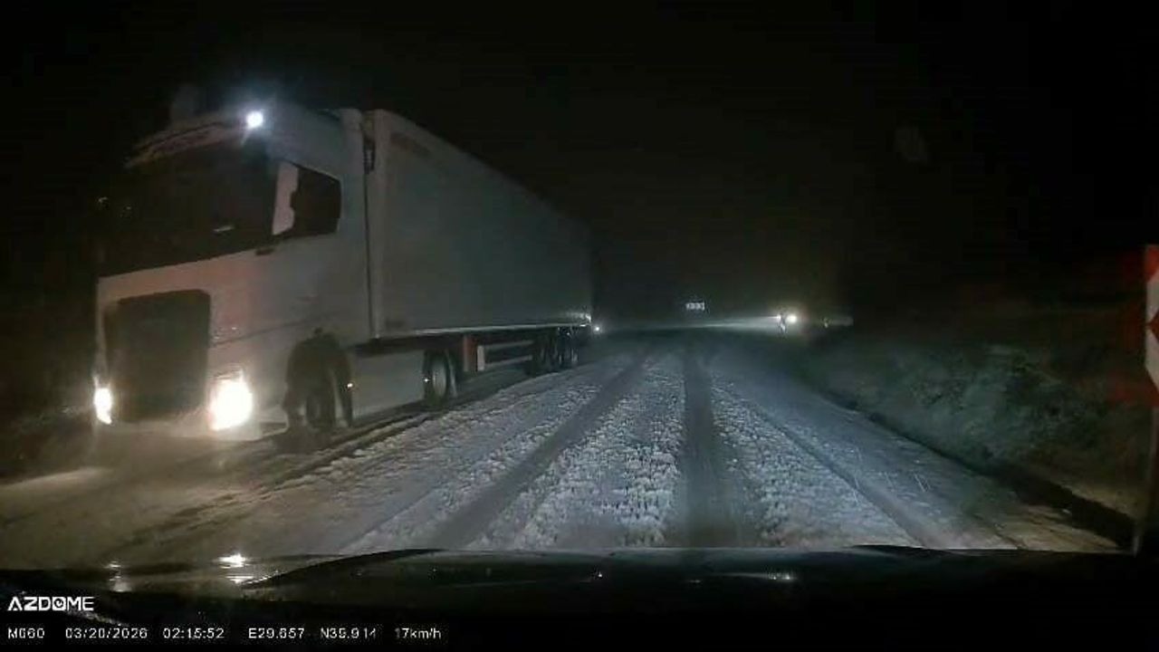 Kar yağışının etkisini sürdürdüğü karayolunda, güvenlik amacıyla ağır tonajlı araçların geçişine ise izin verilmedi.
