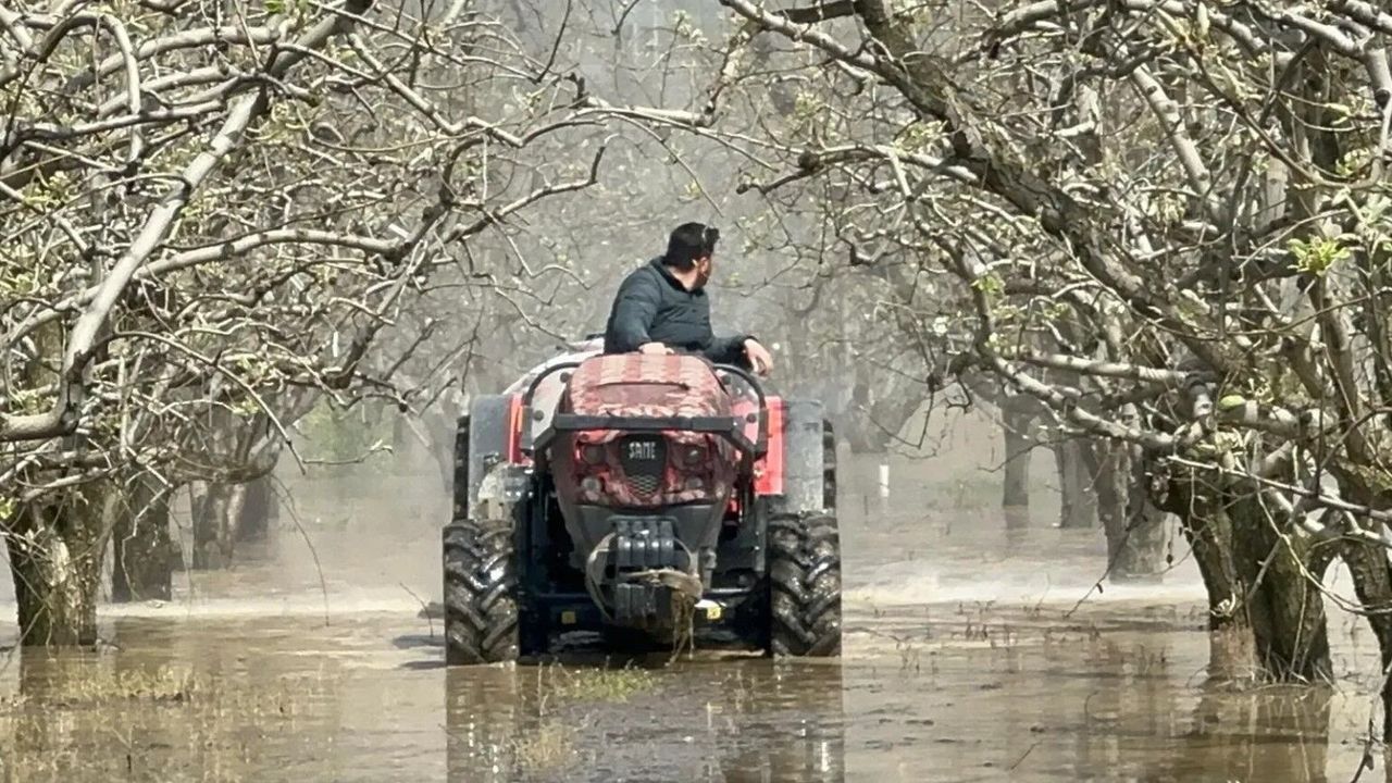 Armut bahçesine ilaçlama yapan üretici Turgay Koç ise yaşadıklarına zorluğa dikkati çekerek, "Traktörlere, bize, çiftçiye, meyve ağaçlarına yazık. 9 dönüm armut bahçemin büyük bölümü su altında. Bir hafta 10 gün su çekilmezse kurayacak. Önümüzdeki günler de yağışlı görünüyor, çaresiziz" diye konuştu.