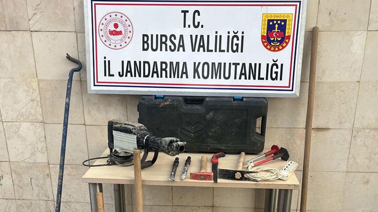 Bursa İl Jandarma Komutanlığı ekipleri, Gemlik İlçesi Şahinyurdu Mahallesi ormanlık alanında kaçak kazı yapıldığı ihbarı üzerin harekete geçti. Olay yerine giden ekipler, define arayan 4 kişiye suçüstü yaptı. Gözaltına alınan zanlılarla beraber, 1 adet jeneratör, 2 adet kırıcı ve delici matkap ve 13 adet muhtelif kazı malzemeleri ele geçirildi.