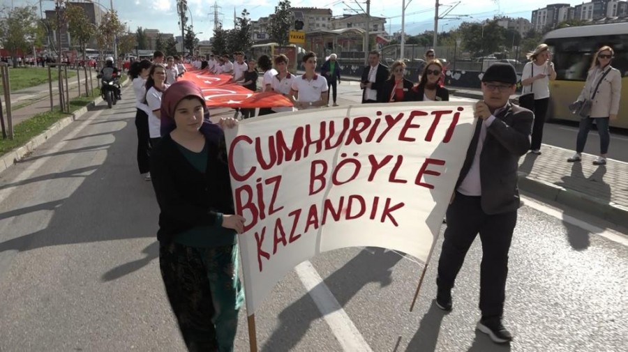Cumhuriyetin 102. yılında bir özel okuldan yüzlerce öğrenci, ellerinde bayraklarda okullarından çıkıp Ahmet Taner Kışlalı ve Özlüce Bulvarında yürüyüş gerçekleştirdi. Öğrencilerin 500 metrelik Türk Bayrağı ile gerçekleştirdikleri kortej, vatandaşlar tarafından da büyük ilgiyle takip edildi. Öğrencilerin geçişine yol veren otomobillerdekiler, apartmanlardaki vatandaşlar marş ve bayraklara eşlik etti.