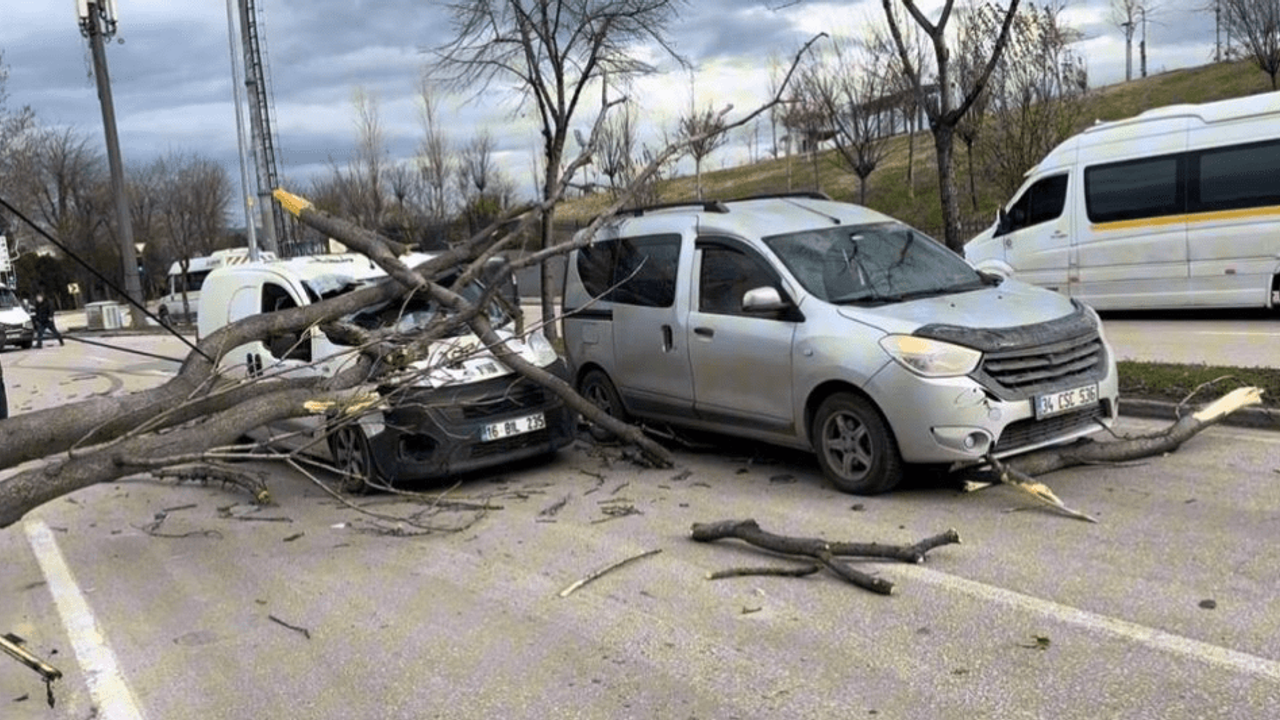 Kent merkezinde hızı 75 kilometreye ulaşan rüzgar nedeniyle, Osmangazi ilçesi Zafer Mahallesinde cadde üzerine devrilen ağaçlar, seyir halindeki hafif ticari iki aracın üzerine düştü. Faciadan eşiğinden dönen sürücüler yaşadığı şok sonrası araçlarından inip 112 ekiplerinden yardım istedi. İhbar üzerine olay yerine sevk edilen itfaiye ekiplerince ağaçların altında kalan araçlar kurtarıldı.