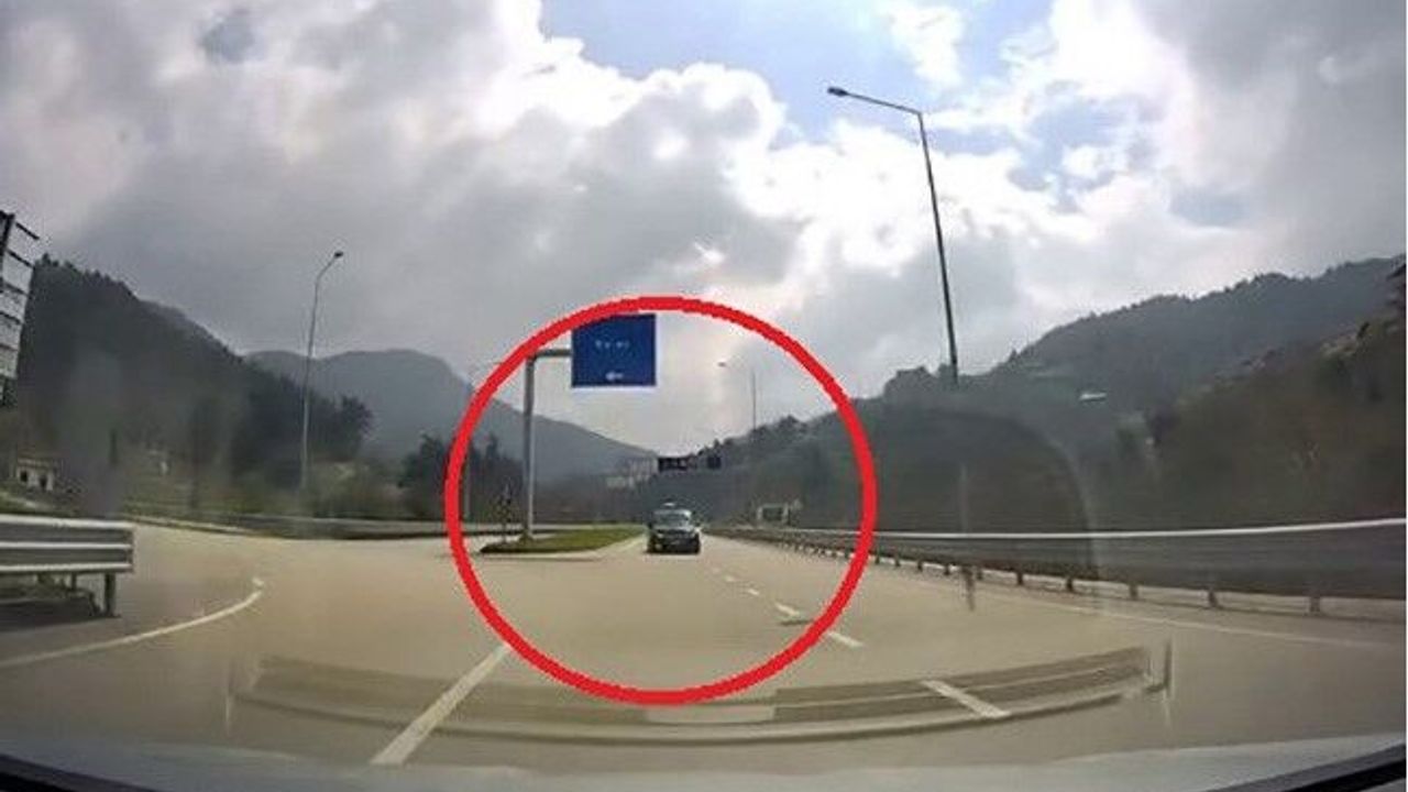 Edinilen bilgiye göre, anayolda seyir halinde ilerleyen bir sürücü, karşı şeritten ters yönde gelen minibüsü son anda fark etti.