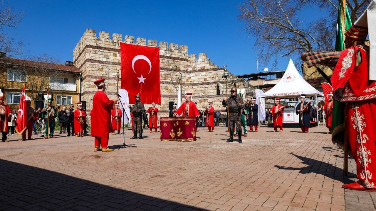 Mehter takımı ile kılıç-kalkan ekiplerinin surlarda yerini almasının ardından tören, İstiklal Marşı ve fetih salasının okunmasıyla başladı. Bursa Uludağ Üniversitesi Tarih Bölümü Öğretim Üyesi Yusuf Ziya Karaaslan, fetih sürecine ilişkin bilgiler vererek Bursa’nın Osmanlı’nın kuruluş dönemindeki stratejik önemine dikkat çekti.