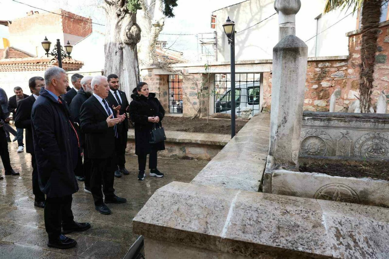 Bursa Büyükşehir Belediye Başkanı Mustafa Bozbey de Alaüddin Paşa Camii’ni ziyaret ederek çalışmaları yerinde inceledi. Günümüzden tam 700 yıl önce Bursa’nın fethinin ardından inşa edilen caminin Bursa tarihi açısından büyük önem taşıdığını söyleyen Başkan Mustafa Bozbey, “Gerçekleştirdiğimiz uygulamayla hazireyi olduğu gibi ortaya çıkardık. Arkadaşlarımız yoğun bir çalışma yürüttü. Alanda dönemin önemli insanlarının mezarları da bulunuyor. Hem büyüklerin hem de çocukların mezarları var. Bu kıymetli mezar taşları caminin haziresinde yeniden gün yüzüne çıkarıldı” dedi.