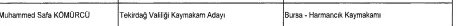 Öte yandan Tekirdağ Valiliği Kaymakam Adayı Muhammed Safa Kömürcü ise Harmancık Kaymakamı olarak görevlendirildi.