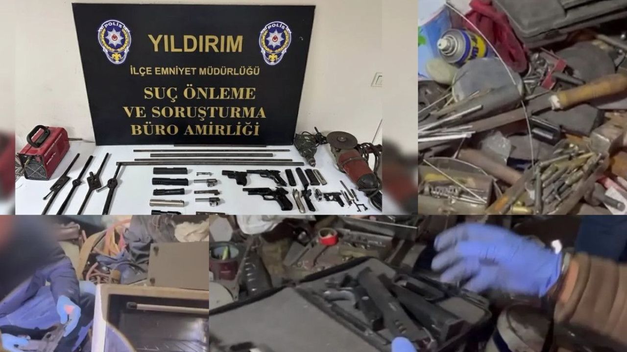 Soruşturma Yıldırım İlçe Emniyet Müdürlüğü Suç Önleme ve Soruşturma Büro Amirliği (SÖS) ekiplerinin başarılı çalışmasıyla sonuçlandı. Yıldırım SÖS ekiplerinin titiz takibi sonucunda yapılan baskında 5 adet ruhsatsız tabanca, 14 adet kurusıkı tabanca, 27 adet şarjör, 63 adet çeşitli çaplarda fişek, silah yapımında kullanılan 14 parça araç-gereç ve 19 adet farklı türde silah parçası ele geçirildi.