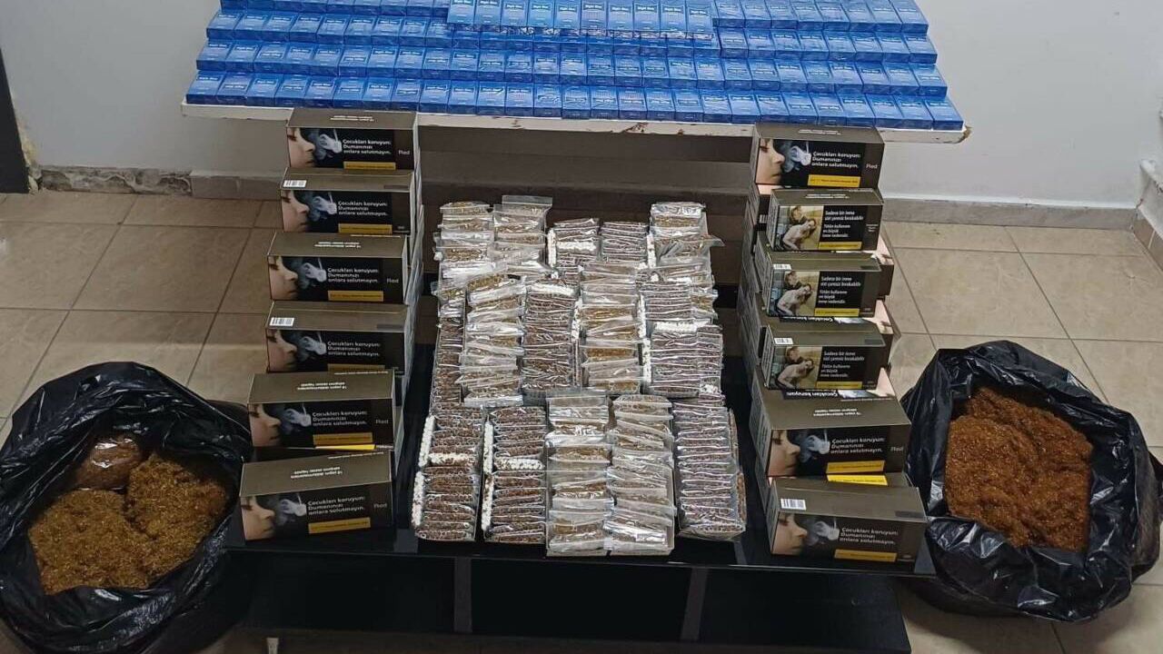 Yapılan aramalarda; paketlenmiş halde 15 bin 380 adet içime hazır sigara, 8 bin 400 adet sarı filtreli içime hazır sigara, 8 bin 800 adet boş makaron ile 22 kilogram kıyılmış tütün bulundu.