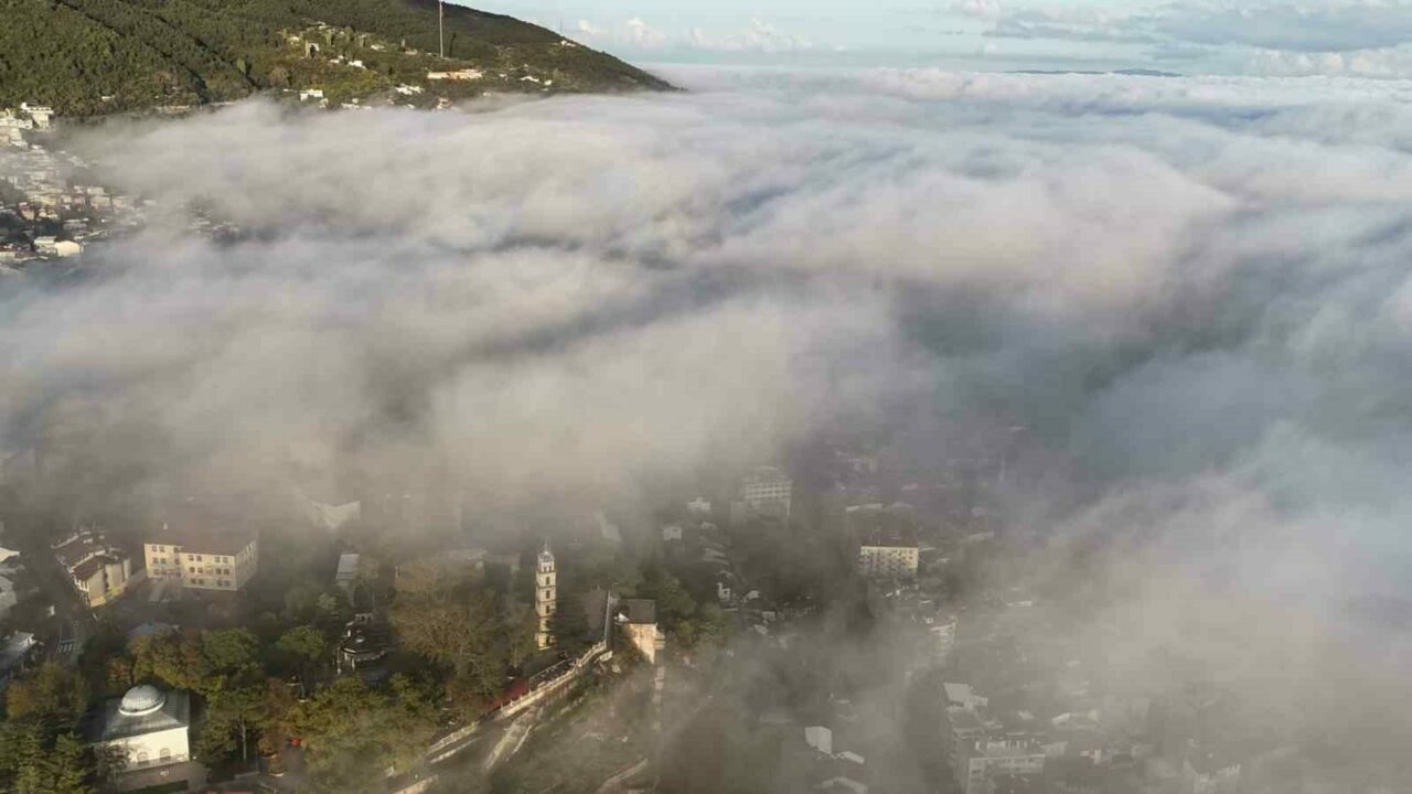 Drone ile havadan görüntülenen Bursa’da binalar sis bulutlarının arasında kaybolurken, pamuklara bürünmüş bir Bursa gibi izleyenleri mest etti. Bursa’nın simgesi olan Ulu Cami, Tophane ve önemli tarihi mekanların sis altındaki görüntüleri büyüledi. Ortaya çıkan görsel şölen, izleyenler tarafından büyük beğeni kazandı.