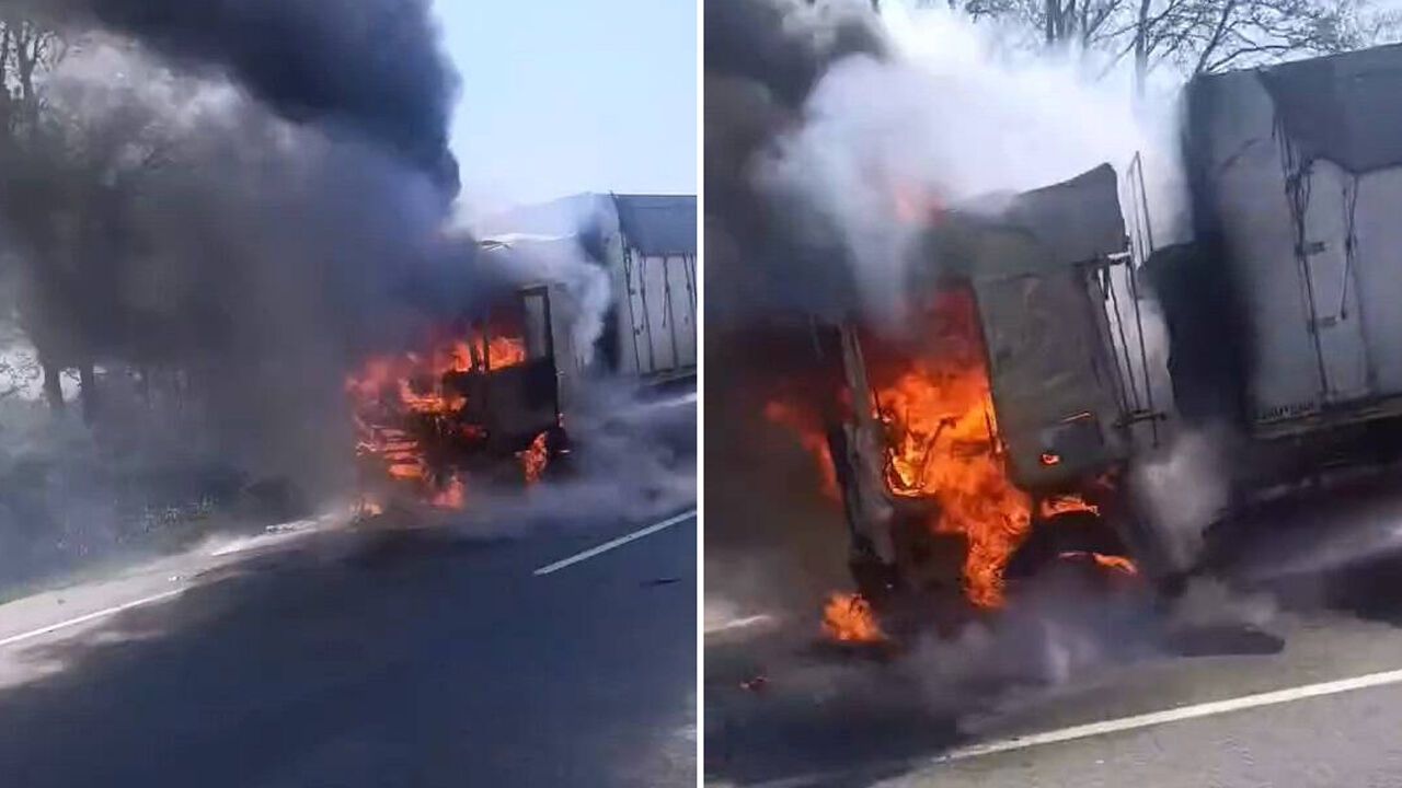 Yangın ihbarla olay yerine gelen itfaiye ekipleri tarafından söndürülürken, o anlar yoldan geçen diğer sürücüler tarafından cep telefonu kamerasıyla görüntülendi.