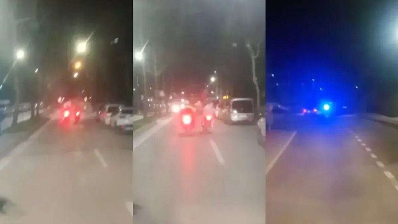 Polis ekiplerinin 'dur' ihtarına uymayan sürücü, motosikletiyle hızla olay yerinden uzaklaşarak kaçmaya başladı. Yaşanan kovalamaca sırasında motosiklet sürücüsünün kaçtığı anlar çevrede bulunan bir vatandaş tarafından cep telefonu kamerasıyla kaydedildi.