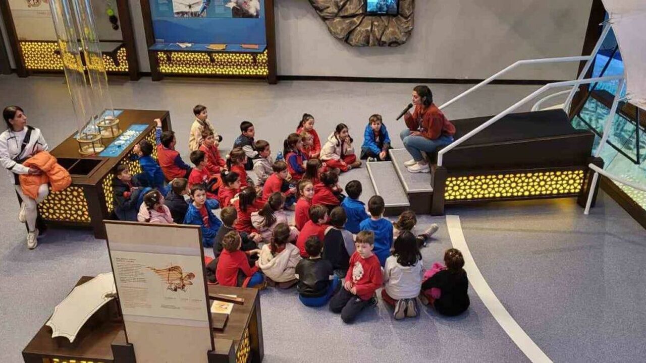 Bursa Ticaret ve Sanayi Odası (BTSO) öncülüğünde kurgulanan merkezde düzenlenen "Uzay-Havacılık Minikler Kulübü" etkinliklerinde İbrahim Uyar İlköğretim okulu 1'inci sınıf öğrencileri, özel hazırlanan Çocuk Galerisi’nde eğlenerek öğreniyor.