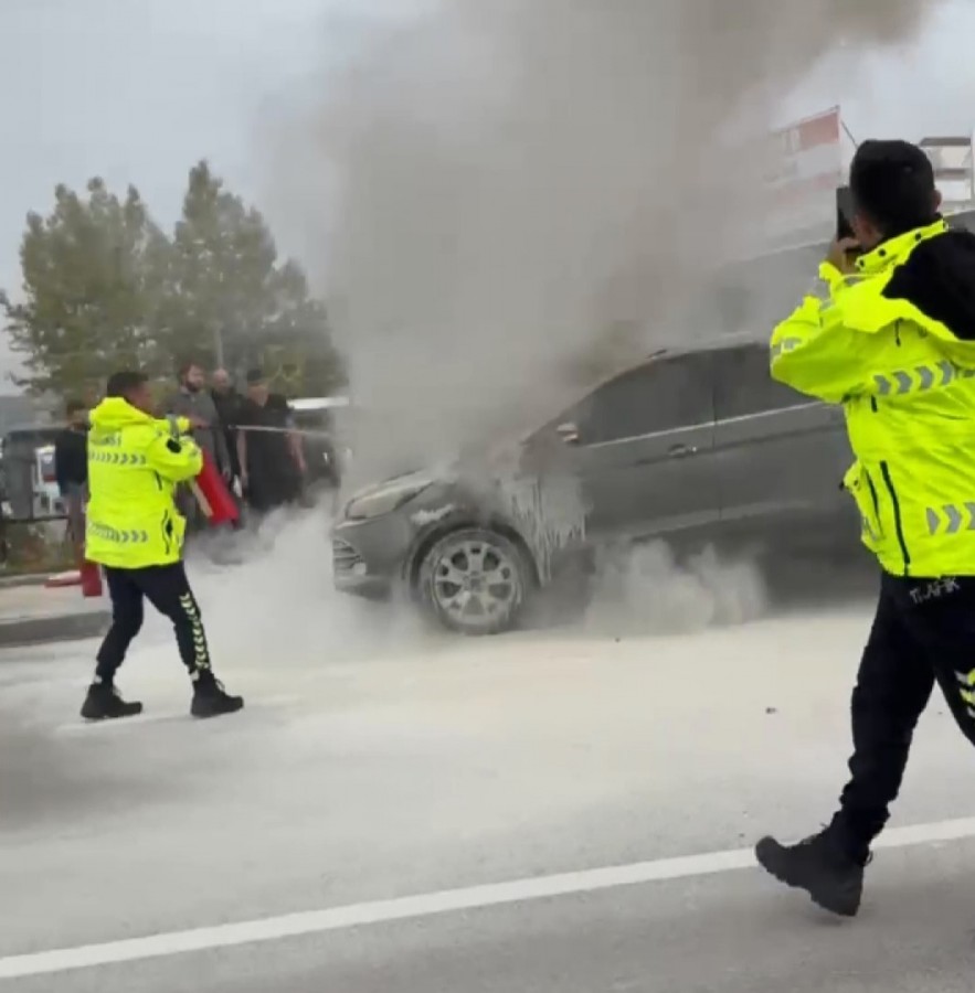Şans eseri olay yerinden geçen trafik polisleri, yangına yangın tüpleriyle hızlı müdahalede bulundu. Polislerin çabası sayesinde yangın kısa sürede kontrol altına alındı.