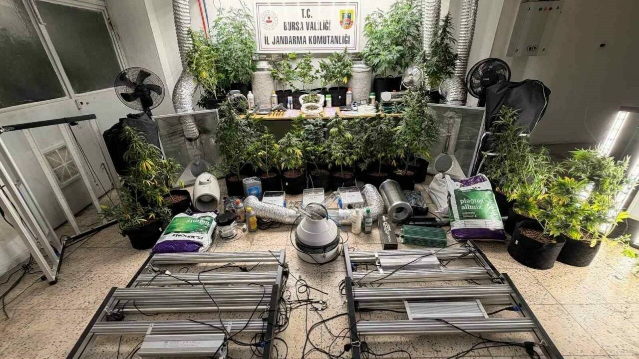 Nilüfer ilçesinde uyuşturucu imalathanesine çevrilen bir evde 4 parça halinde 755 gram kubar esrar, 27 kök skunk bitkisi, 4 kök kenevir bitkisi, 4 adet iklimlendirme sistemi, 1 adet pres makinesi, çok sayıda şeffaf poşet ve kilitli şeffaf poşet ele geçirldi. Bir kişi gözaltına alınırken, şahsın sorgusunun ardından adliyeye sevk edileceği öğrenildi.