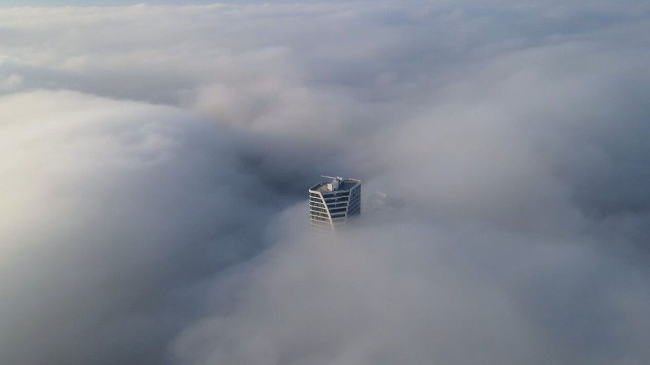 Görüntülerde yalnızca bu binaların bulutların üzerine çıktığı görüldü. Ortaya çıkan kareler sosyal medyada büyük ilgi gördü.