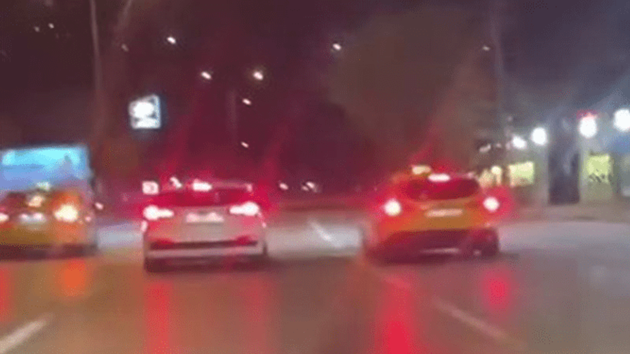 Öte yandan, yaşanan kovalamacada taksiden inen bir kişinin ise, korsan taşımacılık iddiası ile kovaladıkları şahsın aracına tekme atmaya çalışması kameraya anbean yansıdı.