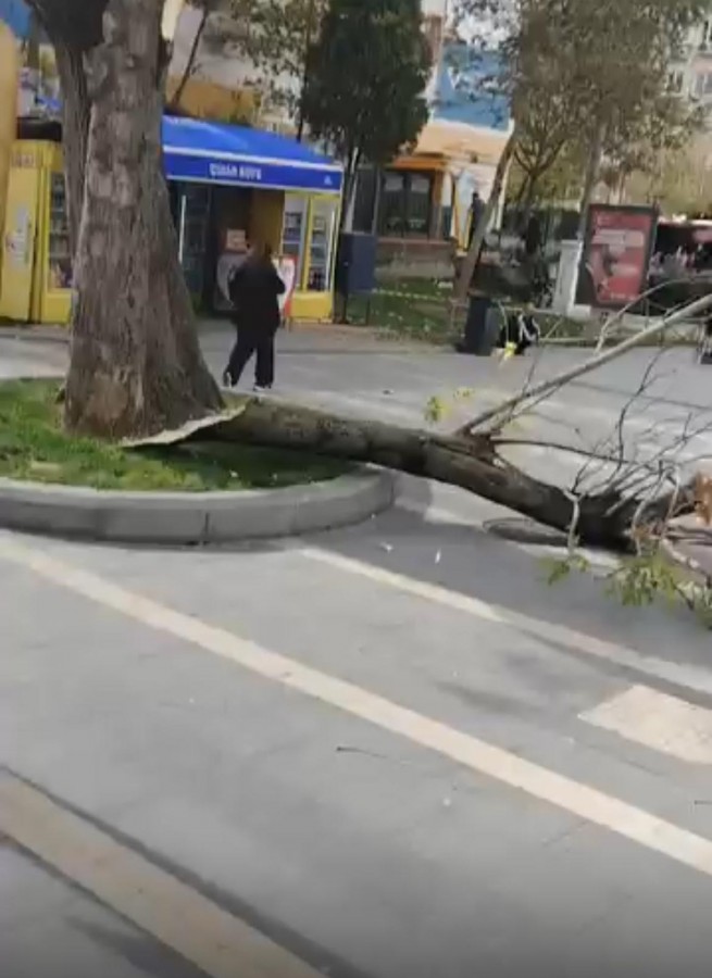 Öte yandan Osmangazi ilçesinde de şiddetli rüzgara dayanamayan çınar ağacının dalı yola devrildi.