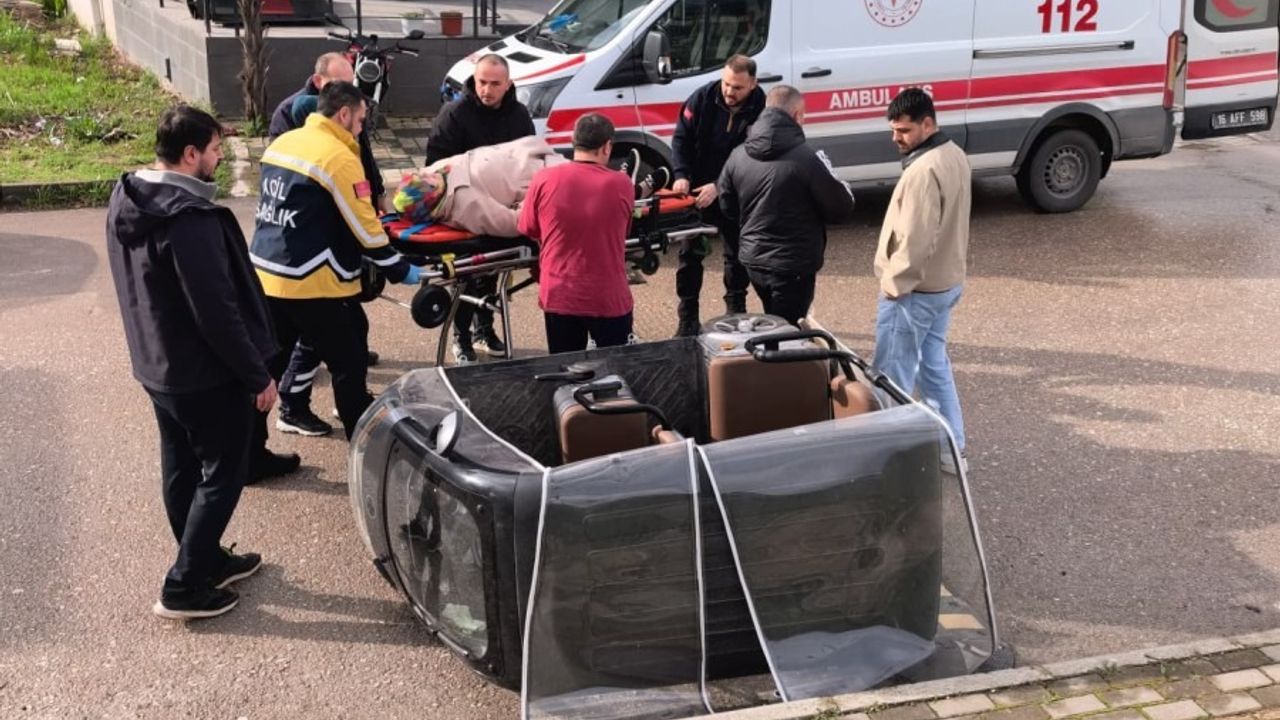 Sıkışan sürücü yaralanırken, ihbarla kaza yerine sağlık ekipleri sevk edildi. Sağlık personeli ve çevredekilerin yardımıyla triportörden çıkarılan Şerife Ç., ambulansla İnegöl Devlet Hastanesi'ne kaldırıldı.