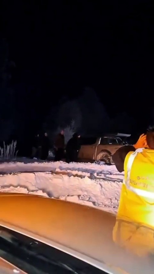 Edinilen bilgiye göre, yoğun kar yağışı ve olumsuz hava şartları sebebiyle İnegöl ilçesi Tuzla Tepel Yaylası'nda yolda mahsur kalan araçtaki 6 kişi yardım talebinde bulundu. İhbar üzerine bölgeye sevk edilen Büyükşehir Belediyesi ekipleri, karla kaplı yolu açarak mahsur kalan vatandaşlara ulaştı. Ekiplerin çalışması sonucu araç bulunduğu yerden çıkarılırken, vatandaşlar güvenli bölgeye tahliye edildi.