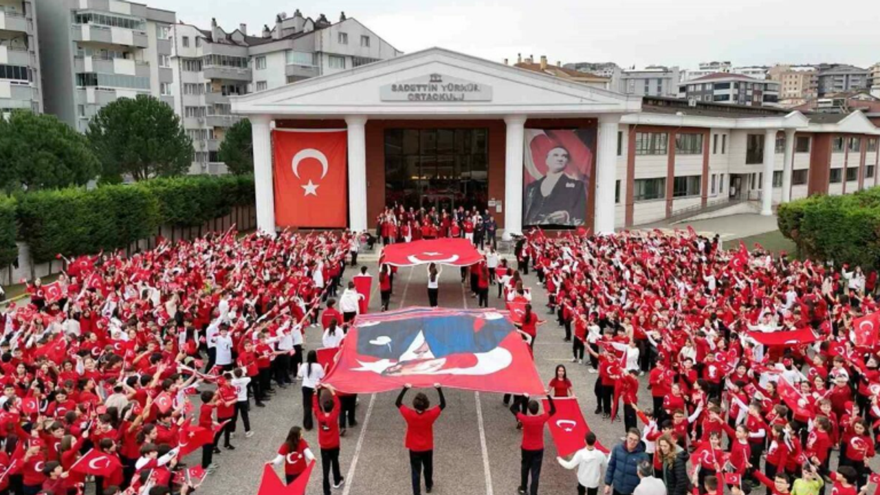 Milli Eğitim Bakanlığı’nın talimatı ve Türkiye Yüzyılı Maarif Modeli vizyonu doğrultusunda düzenlenen “İlk Derste Bayrak Sevgisi” temalı etkinlikte, okul bahçesi kırmızı-beyaz renklere büründü. Etkinlik kapsamında bin öğrenci, ellerinde bin Türk bayrağıyla okul bahçesinde bir araya geldi. Öğrencilerin aynı anda bayraklarını açmasıyla oluşan görüntü, görsel bir şölen oluştururken, etkinlik duygu dolu anlara sahne oldu.