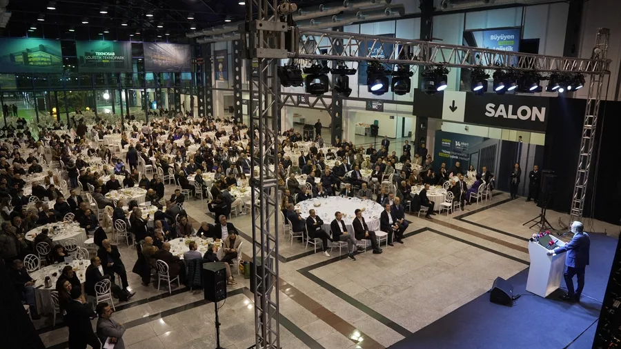 TEKNOSAB Lojistik Teknopark İftar Programı ve Yatırımcı Buluşması Bursa Fuar Merkezi'nde gerçekleşti. TEKNOSAB Lojistik Teknopark yatırımcılarıyla bir arada olmaktan duyduğu memnuniyeti dile getiren BTSO Yönetim Kurulu Başkanı İbrahim Burkay, bu anlamlı birlikteliğe vesile olan herkese ve katılımcılara teşekkür etti. BTSO çatısı altında büyük ve birbirine yürekten bağlı bir aile olduklarını belirten Başkan Burkay, binlerce yıllık ahilik geleneğinden aldıkları dayanışma ruhunun iş dünyasını güçlü kılan en önemli unsur olduğunu ifade etti. "Bizim işimiz sadece üretmek değil, birbirimize omuz vermek, birbirimizin derdiyle dertlenip sevincini paylaşmaktır." diyen Başkan Burkay, konuşmasını şöyle sürdürdü: "Hatırlarsınız; yola çıkarken 'biz kurallara uyan değil, kural belirleyen taraf olacağız' dedik. Üretimdeki yüksek standartlarımızla, dijital dönüşümdeki kararlılığımızla ve katma değerli ihracat odaklı vizyonumuzla bunu sağladık. Rekabetin sınır tanımadığı bir dünyada, başkalarının çizdiği yolda yürümek yerine, kendi oyun planımızı kurarak küresel ticarette Bursa'nın ağırlığını hissettirmeyi hedefledik. İşte bu vizyonun ilk ve en büyük meyvesini, ülkemizin yüksek teknolojili ilk organize sanayi bölgesi olan TEKNOSAB'ı hayata geçirerek verdik. Şimdi ise bu gücü, TEKNOSAB Lojistik Teknopark ile taçlandırıyoruz."