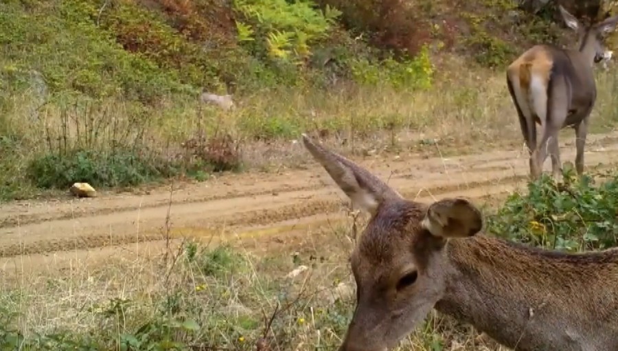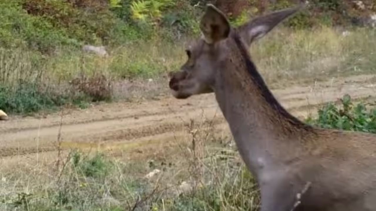 Ormandaki çalılıklarda otlayan 2 dişi kızılgeyiğin görüntüleri, DKMP 2'nci Bölge Müdürlüğü'nün sosyal medya hesabından, 'Doğanın içinden, en doğal haliyle' sözleriyle paylaşıldı.