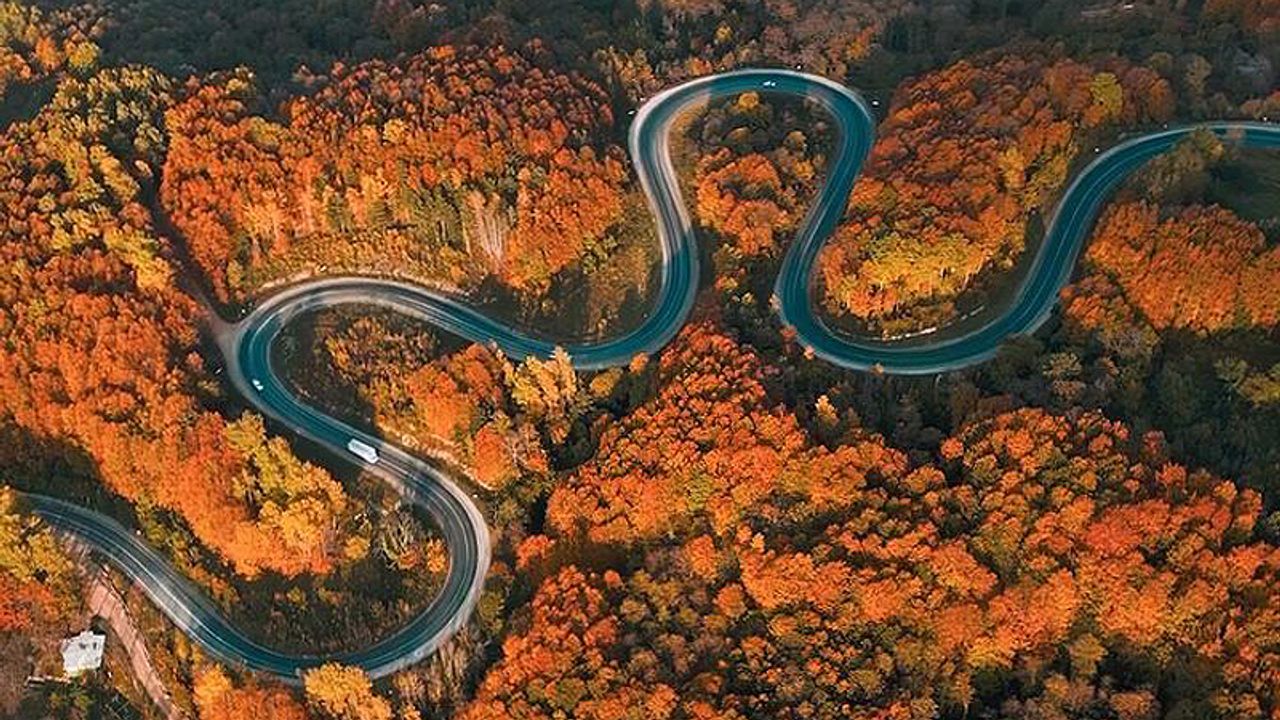 Sürücüler, çevresindeki ağaçların sonbahar renklerine büründüğü manzaranın keyfini çıkararak yolculuk yapıyor.