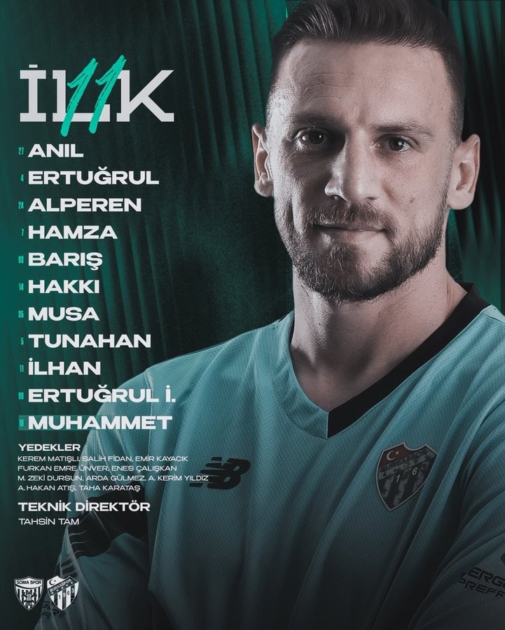 Bursaspor: Anıl Atağ, Hamza Gür, Alperen Babacan, Ertuğrul Ersoy, Barış Gök, Ertuğrul İdris Furat, Hakkı Türker, Musa Çağıran, İlhan Depe, Tunahan Ergül, Muhammet Demir