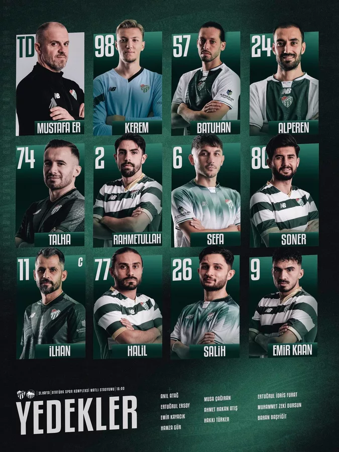 TFF 2. lig Kırmızı Grup'ta mücadele eden Bursaspor, ligin 31. haftasında Mardin 1969 Spor Kulübü ile saat 16:00'da Atatürk Spor Kompleksi Matlı Stadyumu'nda mücadele edecek. Karşılaşma, Bi Kanal TV ve AS TV'den canlı yayınlanacak.