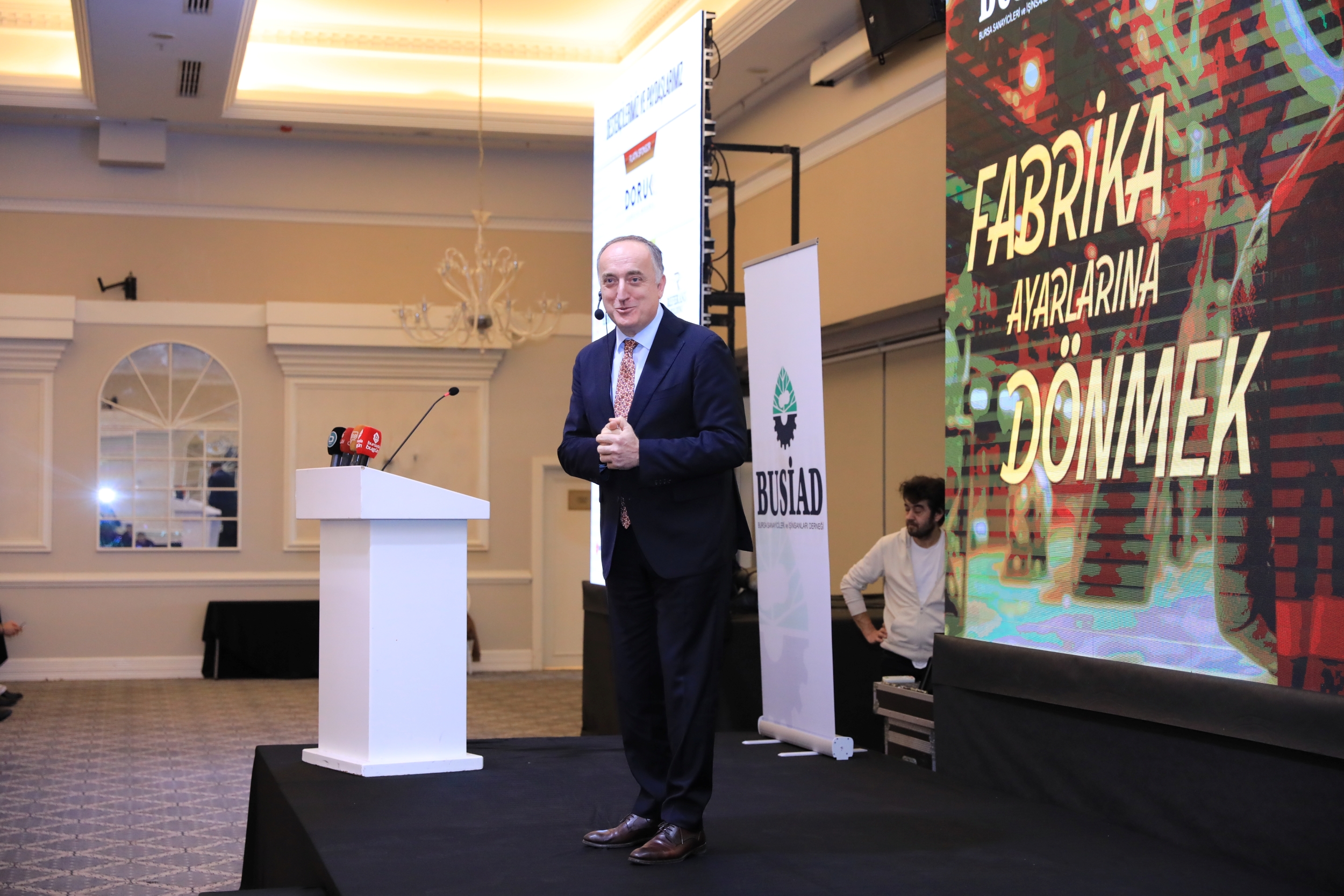 BUSİAD Yönetim Kurulu Başkanı Buğra Küçükkayalar, Kızılderililere ait olan, “O kadar hızlı gittik ki, ruhumuz geride kaldı. Biraz soluklanalım, ruhumuz bize yetişsin” atasözüyle başladı. Küçükkayalar, son yıllarda iş dünyasının gündemini belirleyen değişim, dönüşüm, dijitalleşme, yapay zekâ, sürdürülebilirlik gibi kavramların ilerlemeyi hedeflediğini ancak hızlı dönüşümün temelleri, değerleri, insan odağını ve işin özündeki “neden”leri gözden kaçırdığına dikkat çekmek için “Fabrika Ayarlarına Dönmek”, temasını benimsediklerini kaydetti.