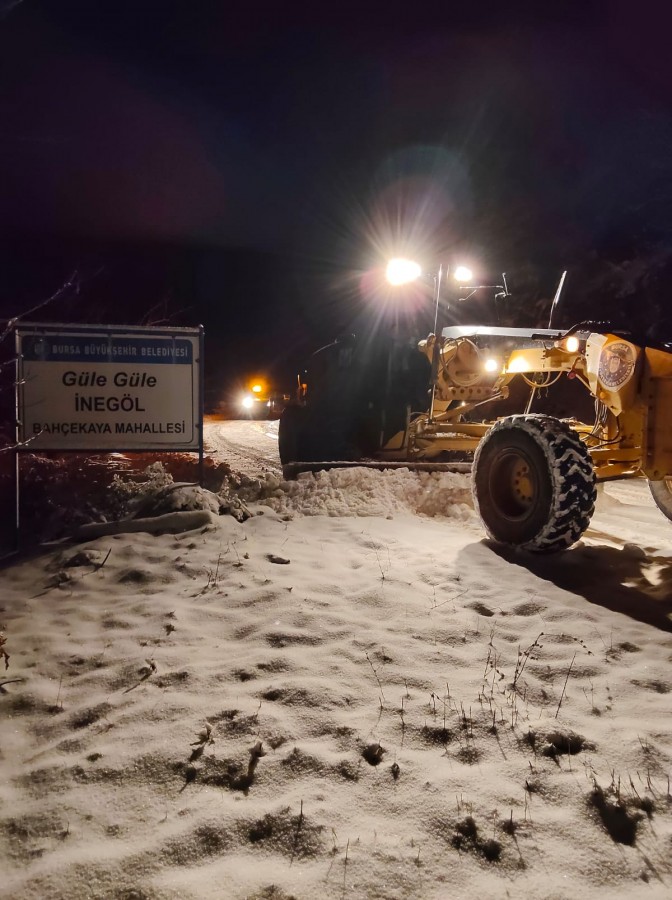Kent genelinde iki vardiya halinde görev alan toplam 1021 personel, 203 iş makinesi ve kar küreme aracıyla 145 mahalle yolunu trafiğe açtı. Kar yağışının etkili olduğu Keles'te 23, İnegöl'de 22, Büyükorhan'da 21, Kestel ve Osmangazi'de 14, Orhaneli'de 13, Mustafakemalpaşa ve İznik'te 10, Harmancık 7, Yıldırım, Gemlik ve Gürsu'da 3, Yenişehir ve Orhangazi'de ise birer mahallenin yolu ulaşıma açıldı. Kent genelinde kapalı mahalle yolu bulunmazken, ekipler yağışın devam ettiği bölgelerdeki çalışmalarını kesintisiz sürdürüyor.