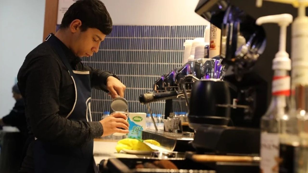 Merinos Parkı'ndaki BURFAŞ B Kafe'de stajyer barista olarak görev yapan 16 yaşındaki Ümit Hazar, barista önlüğünü giyerek personelle birlikte siparişleri titizlikle hazırlıyor. B Kafe'de staj yapmaktan mutluluk duyduğunu söyleyen Hazar, kafeye gelen vatandaşlardan da büyük takdir topluyor.