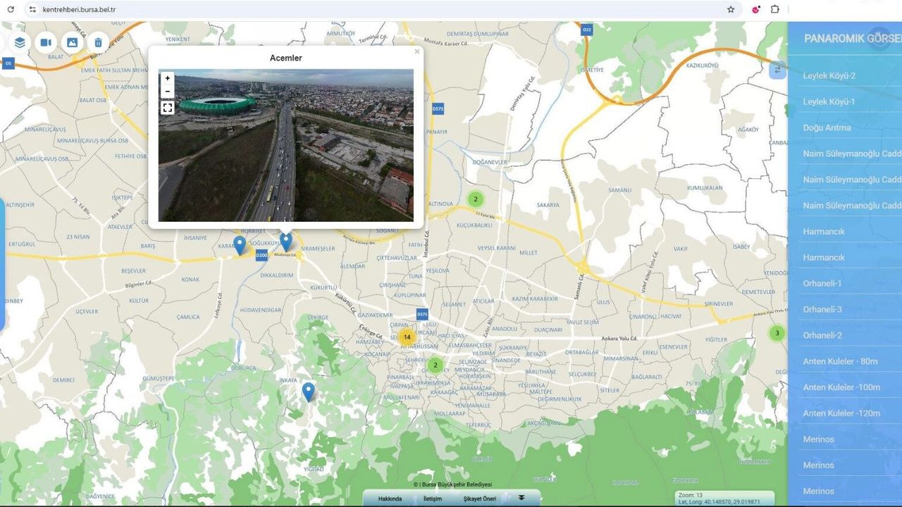 Uygulama, kent hakkında pek çok bilgiye hızlı ve kolay şekilde ulaşım imkanı sunuyor. Kullanıcı dostu ara yüzü ve güçlü harita altyapısı sayesinde ortofotolar, arazi kullanımı, zemin kalitesi haritası, gürültü haritası, nüfus yoğunluğu gibi birçok tematik harita katmanına erişim imkanı sağlanıyor. Kent genelindeki 5000’den fazla önemli nokta (POI) detaylı bir şekilde sunuluyor. Geliştirilen uygulamayla, şehirde yaşayan vatandaşların ve Bursa’yı ziyaret eden turistlerin günlük yaşamlarının kolaylaştırılması hedefleniyor.