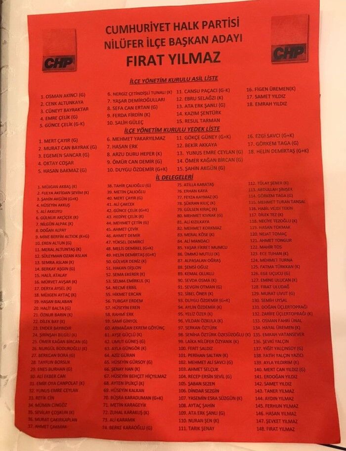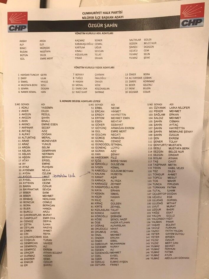 Sandıktan çıkan sonuçta 4 oy farkla Şahin yeni CHP Nilüfer İlçe Başkanı olurken CHP Nilüfer İlçe Kongresi’nde sandıklardan çıkan sonuçlar işte şöyle;
