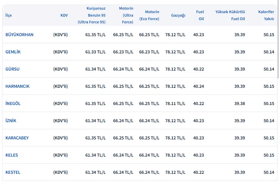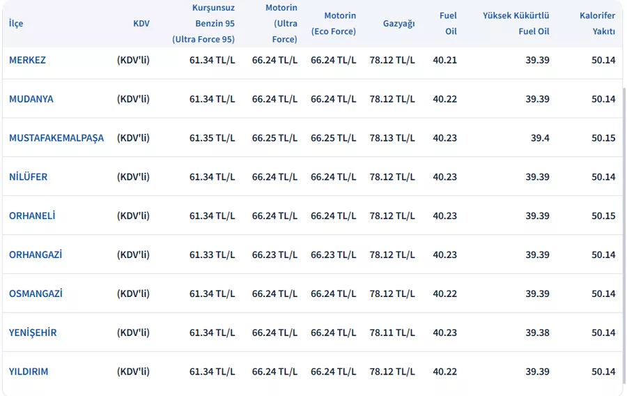 Akaryakıt fiyatları, Brent petrol fiyatları ve kurdaki hareketlilik ile küresel gelişmelere bağlı olarak değişim yaşamaya devam ediyor. Geçtiğimiz günlerde, akaryakıt fiyatlarında jeopolitik gelişmelerden kaynaklı artışın önüne geçilmesi amacıyla geçici olarak eşel mobil sistemi devreye alınmıştı. Son olarak akaryakıta bir kez daha zam geldi, zammın yüzde 75'i eşel mobil sistemiyle vergiden karşılandı. İşte Bursa, İstanbul, Ankara, İzmir 10 Mart 2026 Salı güncel akaryakıt fiyatları...