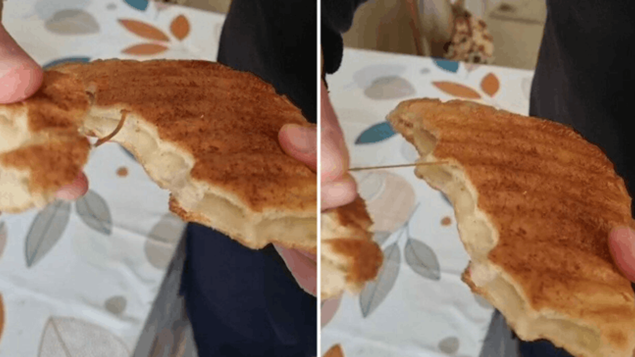 Ekmeği ortadan ikiye böldüğü sırada hamurun içinde paket lastiği olduğunu fark etti.