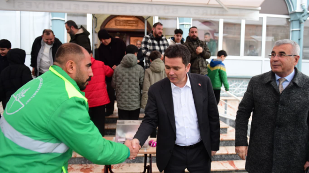 Ramazan Bayramı’nın ilk gününde Osmangazi Belediye Başkanı Erkan Aydın, bayram namazını Nilüferköy Camii’nde cemaat ile birlikte kıldı. Namazın ardından cami avlusunda vatandaşlarla bir araya gelen Aydın, mahalle sakinleri ile tek tek bayramlaştı. Özellikle çocuklarla yakından ilgilenen Başkan Aydın, mahalle sakinlerinin bayramını tebrik etti. Bayramlaşma sırasında sıcak ve samimi görüntüler ortaya çıkarken, Başkan Aydın, mesaisini sürdüren Osmangazi Belediyesi temizlik görevlilerinin fotoğraf ricasını da geri çevirmedi ve Osmangazi Muhtarlar Derneği Başkanı Burhan Mandacı ile birlikte personel ile hatıra karesinde bir araya gelerek, bayramlarını içten dilekleriyle kutladı.