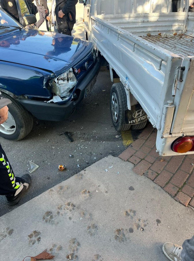 Kaza, Gemlik ilçesi Hamidiye Mahallesi İstiklal Caddesi üzerinde meydana geldi. Direksiyon hakimiyetini kaybeden otomobil sürücüsü H. Ö. kamyonete çarparak durabildi.
