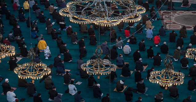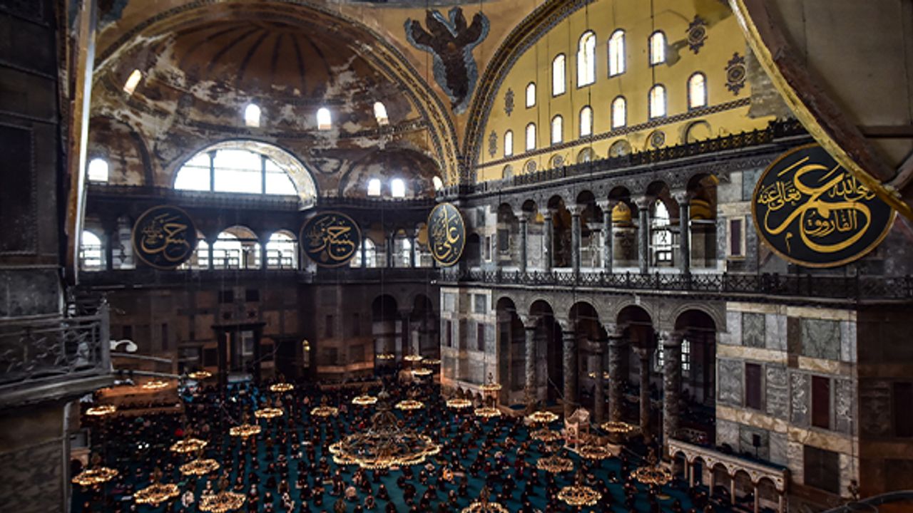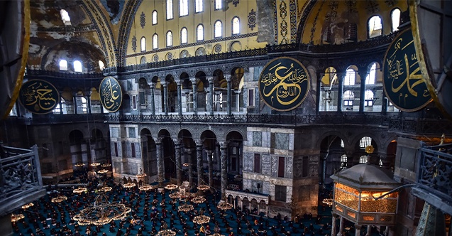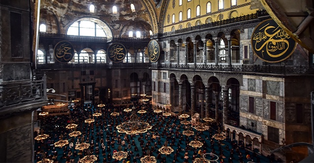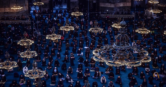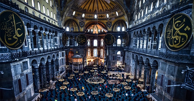 Restorasyonunun yapılabilmesi için 2013'ten bu yana kurulu olan dev iskelenin kaldırılmasıyla yeni çehresine kavuşan Ayasofya, cemaati ile birlikte eşsiz manzaraya sahne oluyor.