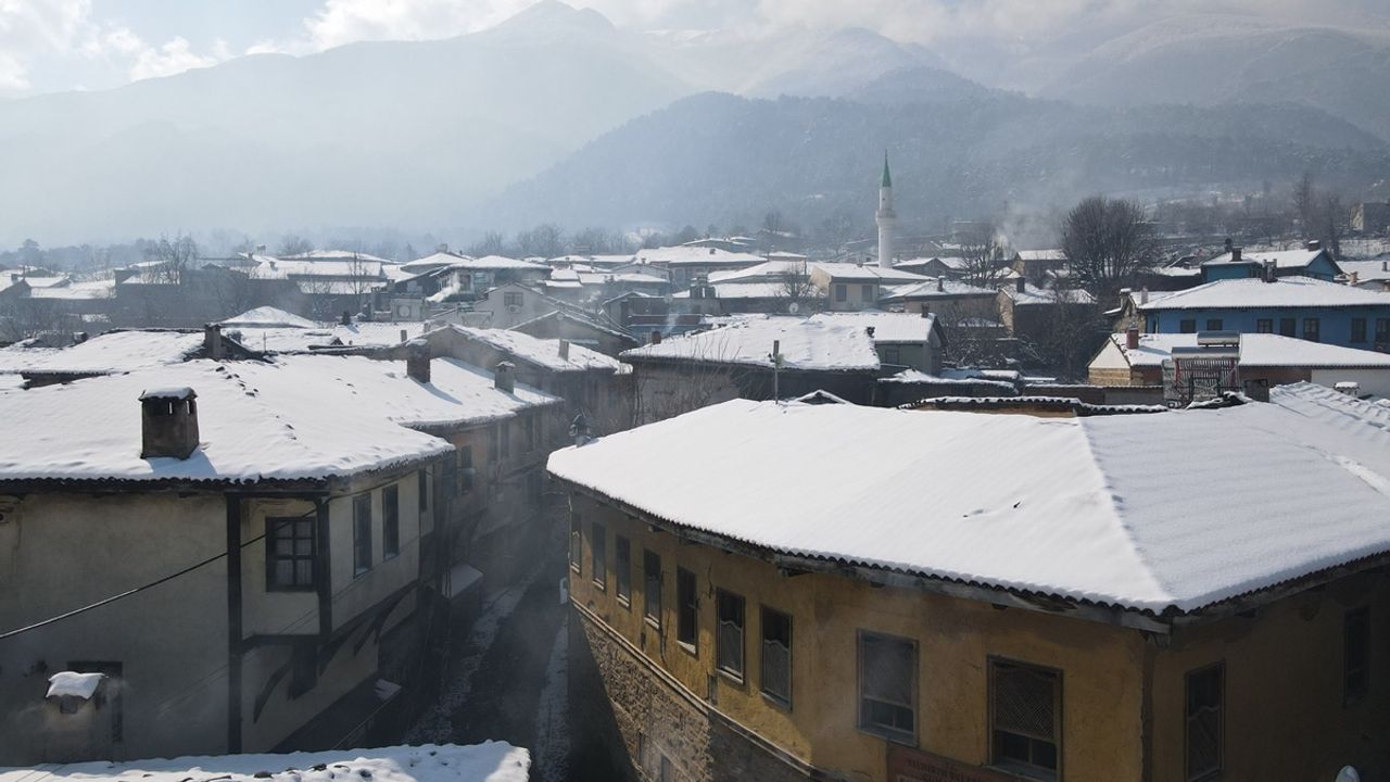 Uludağ'ın eteklerindeki Cumalıkızık'ın beyaza bürünmüş, bacalarından dumanların çıktığı görüntüler insanların içini ısıttı.